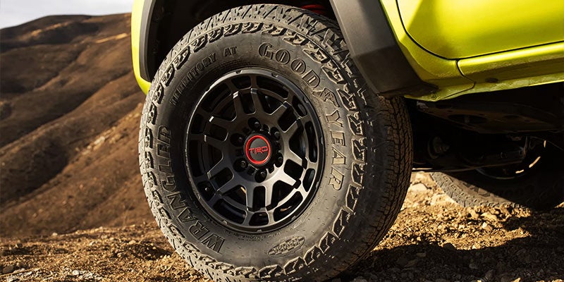Tacoma TRD Off-Road features Multi-Terrain Select (MTS). With five modes to choose from, this system helps regulate wheelspin by automatically adjusting the engine throttle and traction control. When combined with standard Goodyear® Wrangler® tires with tough Kevlar® construction, Multi-Terrain Select helps improve traction dramatically, meaning you can get back to the fun more quickly.